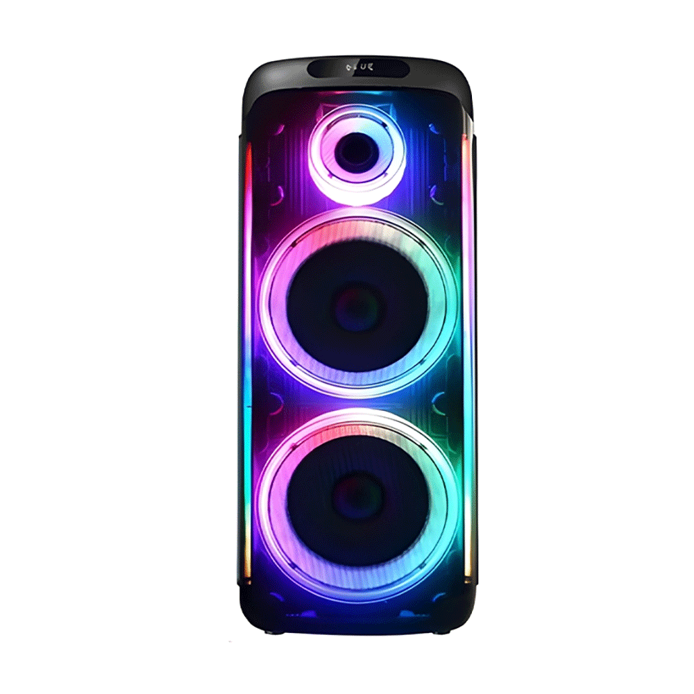 در تصویر بالا نمای اسپیکر بلوتوثی Verity مدل V-PS2410 را مشاهده می‌کنید که نورپردازی RGB آن به‌صورت کاملاً روشن و رنگارنگ به نمایش درآمده است. این جلوه‌های نوری علاوه بر جذابیت بصری، موجب ایجاد فضای دلنشین و پرانرژی برای مهمانی‌ها یا استفاده در فضاهای تاریک می‌شود.