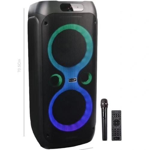 - توان خروجی واقعی (RMS): حدود ۸۰ وات—قدرت کافی برای پخش صدا در مهمانیها و محیطهای کوچک و متوسط. این مقدار از ترکیب دو سابووفر ۸ اینچی با یک توییتر ۱ اینچی بهدست میآید